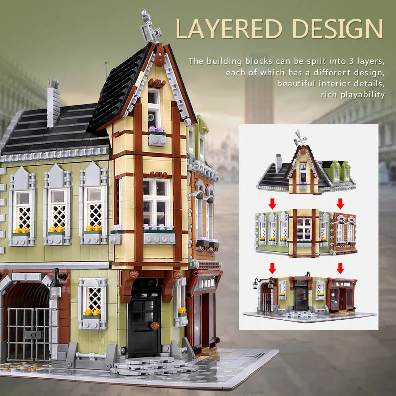MOC Compatible legoing Streetview series The brickstive victor's lab Corner Shop Building Blocks Br