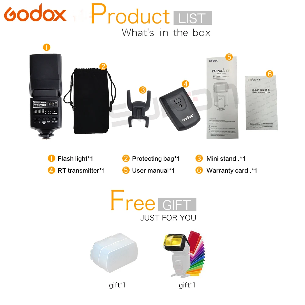 Godox Thinklite Camera Flash TT520II with Build-in 433MHz Wireless Signal for Canon Nikon Pentax Ol