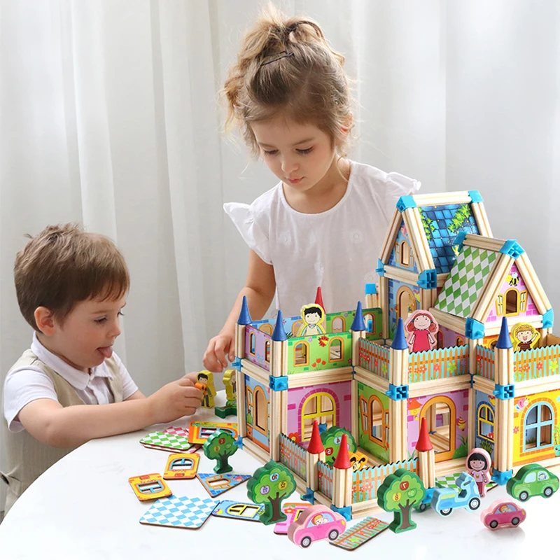 128/268pcs 115 Pcs Kids Toys Wooden Toys Geometric Shape Assembled Building Blocks Early Educationa