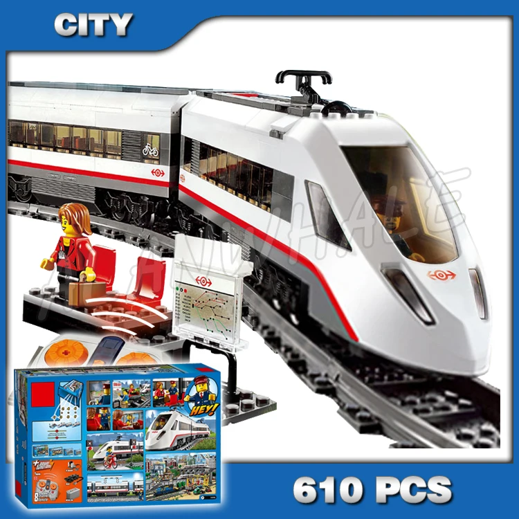 610pcs City High-speed Passenger Train 02010 Remote Control RC Model Building Blocks Assemble Brick
