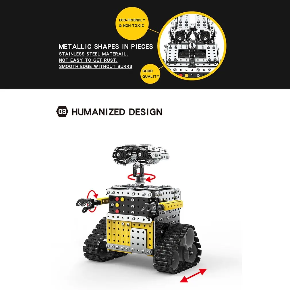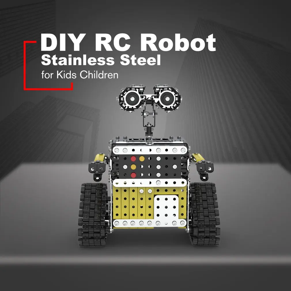 DIY Stainless Steel Remote Control Robot Sliding Block Building Assembled Robot Toy Stand Still for