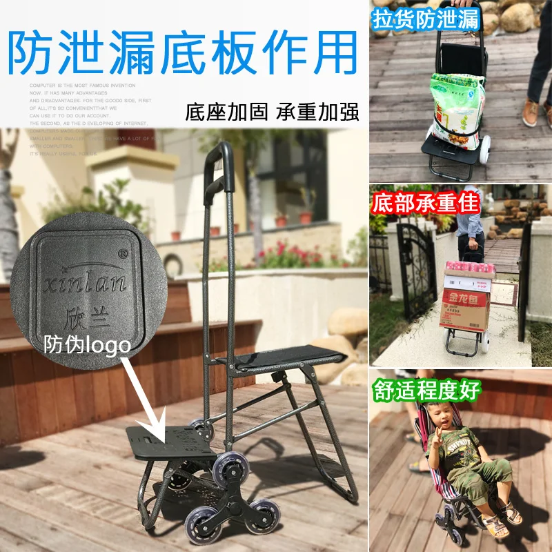 Shopping Cart Small Cart Portable Shopping Cart Climbing Building Trolley Car Trolley Can Sit with
